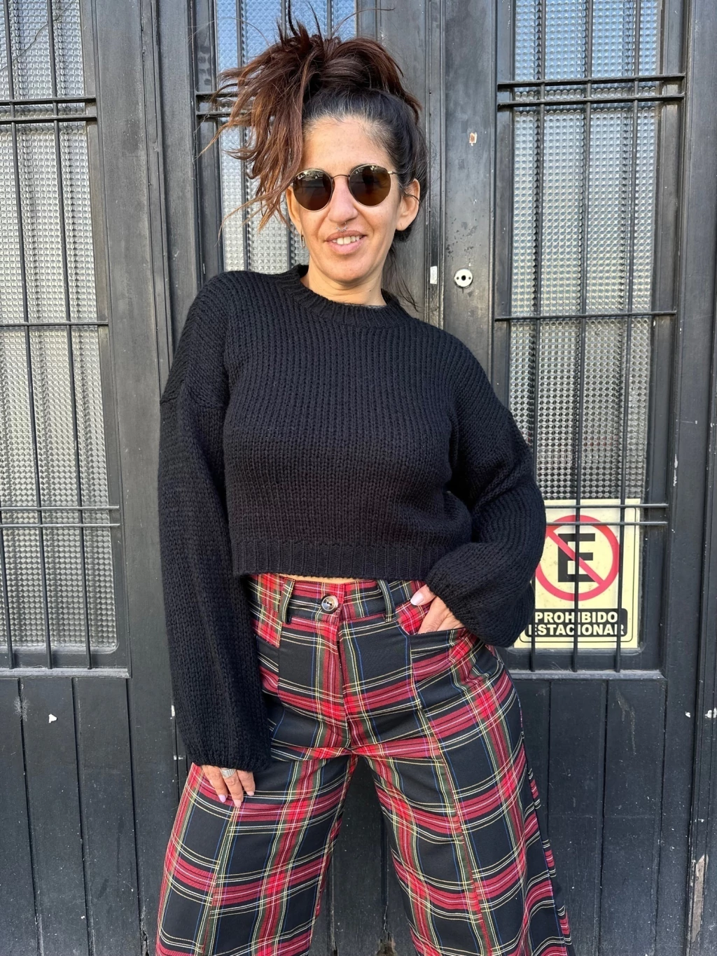Tiene manga larga con puño amplio, cuello al ras y ese largo justo para acompañar pantalones tiro alto.